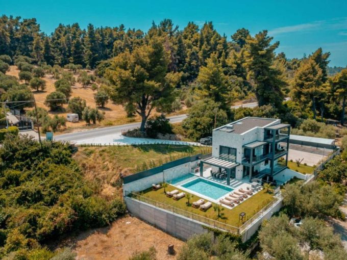 Brand new 2020 build villa 200 m2 in a 1500 m2 plot in Chanioti Chalkidiki with a breathtaking sea view and luxurious living