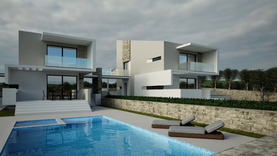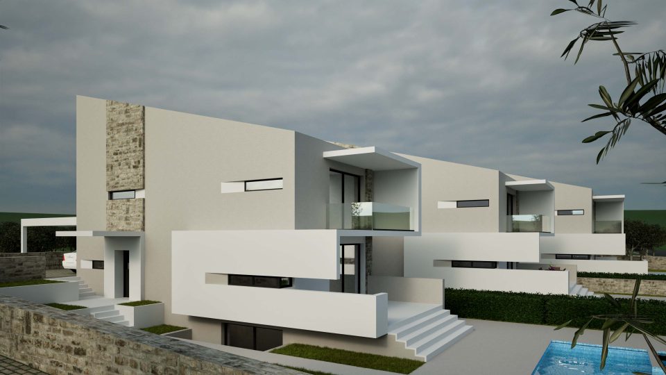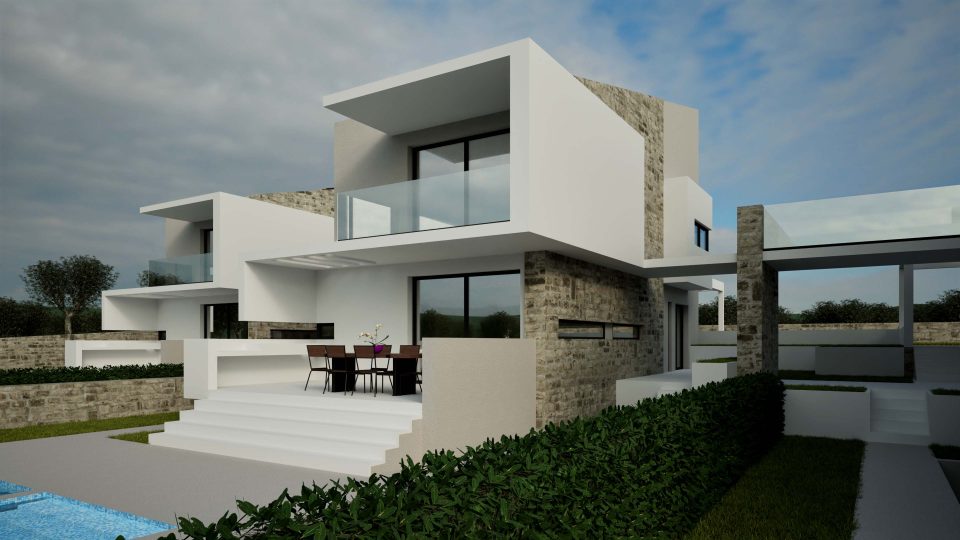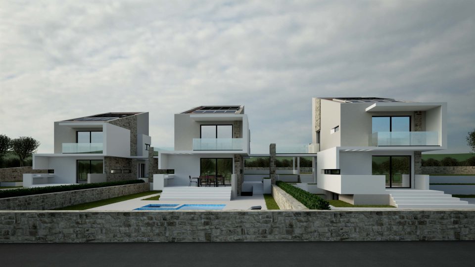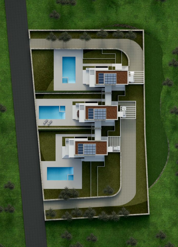 Project inqludes three maisonettes each one in three levels,four rooms and private swimming pool.